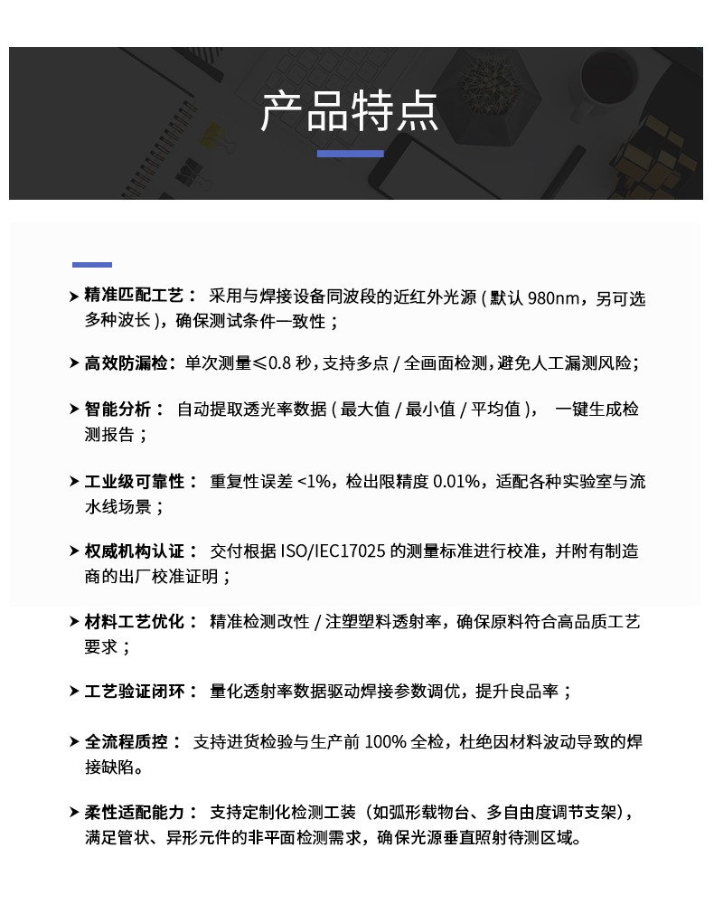 弧面激光焊接透光率检测仪